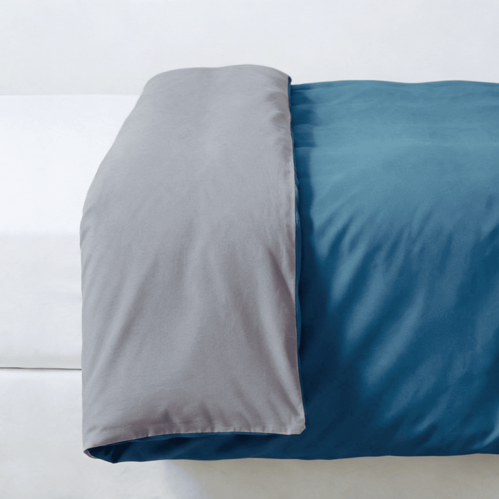 Duvetbezug aus Perkal – 140x200cm – Grau & Blaugrün – Mit Reissverschluss