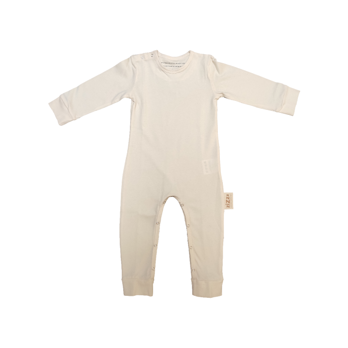 - Schlafoverall für Babys von 6 bis 12 Monaten. Schlicht und weiss (écru).