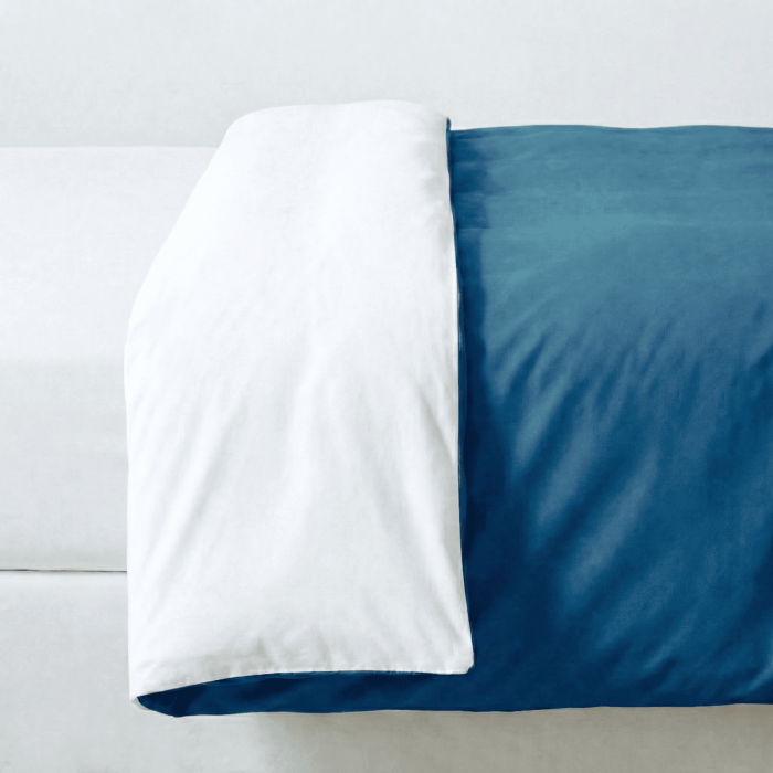 - Bicolour: White on one side and teal on the other. Turn the dover over and give your bed a whole new look!