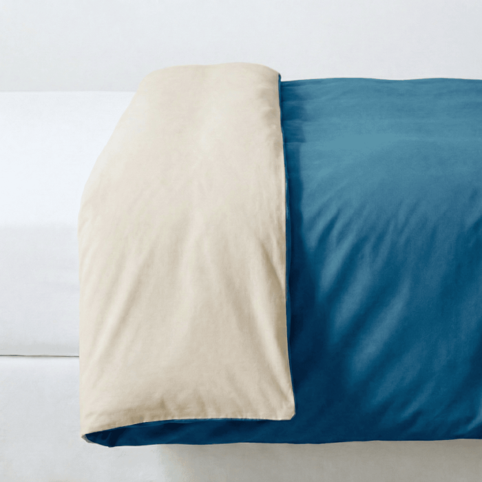 Housse de duvet en percale – 140x200cm – Beige & Sarcelle – avec fermeture éclair