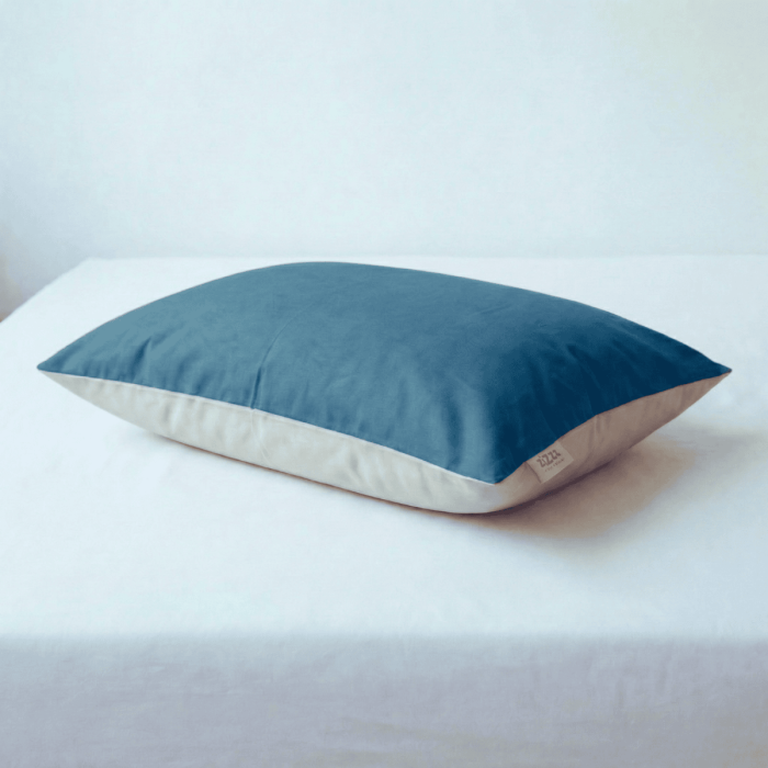 Taie d’oreiller beige et sarcelle (Coton Percale Bio) – Taille 40x60cm